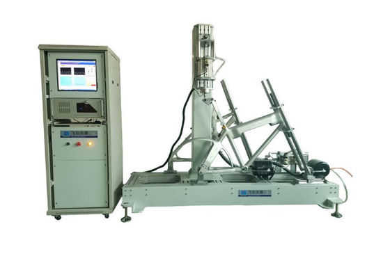 Il tester dinamico di vita di affaticamento di affaticamento della struttura è progettato per la norma della prova di resistenza di affaticamento della struttura della bicicletta ed il doppio cilindro elettrico è utilizzato per l'applicazione della forza. La struttura della bicicletta è montata sul dispositivo della prova ed è riparata ed i tempi di certa frequenza, del carico e della prova si applicano su ciò. La forza applicata affaticamento è giudicata controllando il grado di danno del campione dopo la prova.