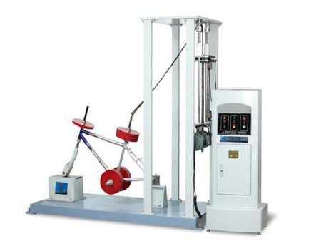 La macchina elettrica della prova di caduta del peso dell'assemblea della forcella anteriore della struttura della bicicletta è utilizzata per simulare la capacità della bicicletta di resistere all'impatto degli ostacoli al suolo quando la ruota anteriore della bicicletta incontra un ostacolo quando guidando. L'assemblea elettrica della bicicletta è sottoposta a prova di urto conformemente al metodo specificato in 27,1 del GB 3565-2005 con una forza di impatto di 80 J (per esempio, una goccia verticale del peso di 22,5 chilogrammi da un'altezza di 360 millimetri). Se la struttura misura con una forcella ammortizzatrice, l'assemblea sarà collaudata a lunghezza libera della forcella anteriore in uno stato scarico. Se la molla attenuante può essere chiusa, dovrebbe essere chiusa alla lunghezza scarica. Per una struttura fornita di un ammortizzatore posteriore, l'ammortizzatore è fissato all'equivalente di un cavaliere di 75 chilogrammi sul veicolo della prova; se l'ammortizzatore non concede chiudere, lo stessi possono essere usati il collegamento solido delle dimensioni sostituiscono la forcella anteriore dell'ammortizzatore o l'ammortizzatore posteriore ed il collegamento ad entrambe l'estremità è lo stesso di quello della forcella anteriore dell'ammortizzatore o dell'ammortizzatore posteriore.