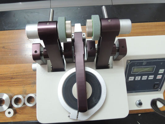Taber Abrasion Tester (Taber Abraser) utilizza il modello X di abrasione prodotto da un'azione rotativa di un paio di ruote abrasive.detentori di campioni, ruote abrasive, rifacer ruota e unità di vuoto.