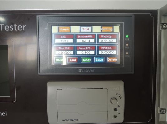 Versione del touch screen: Il touch screen, energia cinetica migliorata, facile da operare, registrerà il tempo, la velocità, la macchina calcola automaticamente l'energia cinetica e la stampa e la funzione di calibratura.