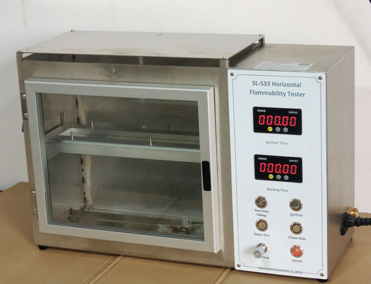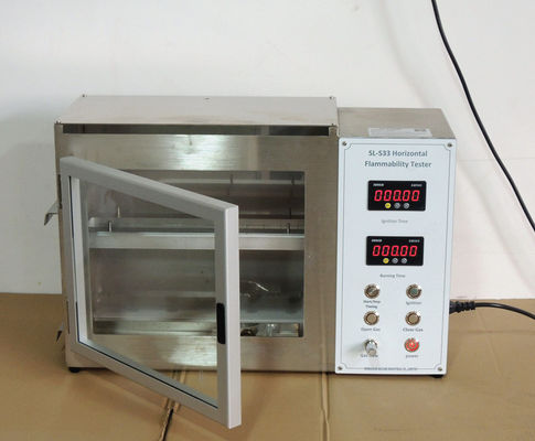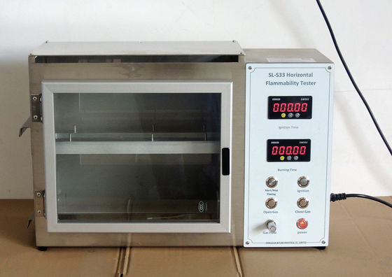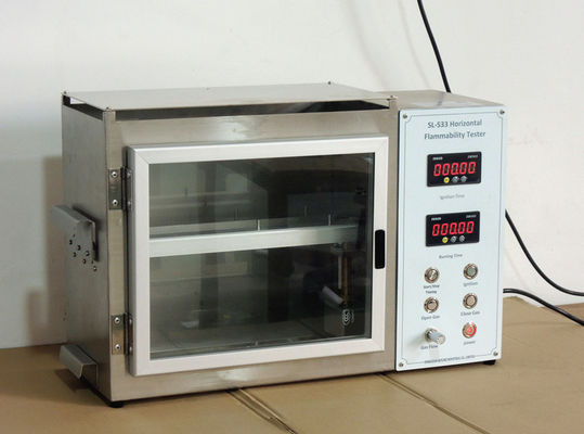 Il tester orizzontale di infiammabilità può individuare il rallentamento relativo della fiamma e di velocità di combustione dei tessuti, particolarmente tessuti interni automobilistici. Proprietà ignifughe dei materiali interni automobilistici nell'errore e nelle circostanze anormali.
