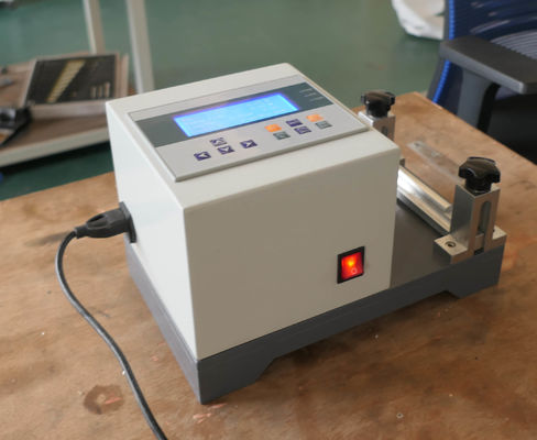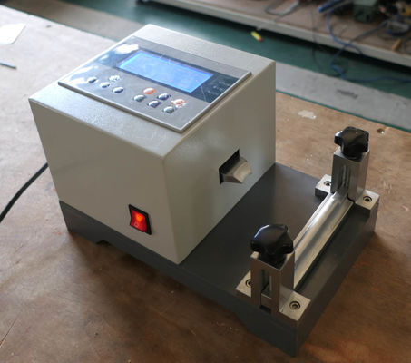 Questa macchina di prove è utilizzata per verificare la forza di buccia fra la sogliola e la tomaia della scarpa. Il principio è di premere l'ultimo finito della scarpa sulla macchina di prove e pela il solo e superiore con un coltello di pelatura. La forza della prova che pela la colla iniziale è la forza di pelatura e la forza di pelatura è calcolata in base alla larghezza del coltello di pelatura.