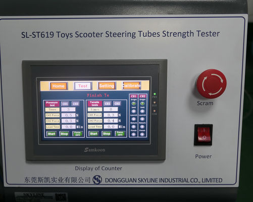 Tester di guida di forza dei tubi del motorino dei giocattoli applicarsi per verificare la forza dei tubi di guida del motorino del giocattolo, compreso resistenza alle forze discendenti e resistenza alle forze ascendenti.