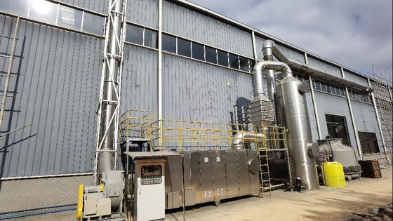 L'inquinamento atmosferico della prova di fuoco con le caratteristiche di alta discontinuità della temperatura, di prove del gas di scarico, del volume basso del gas di scarico, della concentrazione bassa del gas di scarico e della composizione complessa del gas di scarico, per assicurare la protezione dell'ambiente per rispettare i limiti di emissione, il gas di combustione raccolto in primo luogo attraversa il filtro a sacco di impulso di cui l'efficienza di filtrazione della particella raggiunge 99,99%, poi prendpartee alla fotoossidazione che UV il deviceand catalitico infine prendpartee alla torre dell'adsorbimento del carbonio attivato, all'adsorbimento delle particelle restanti ed alla rimozione degli odori sgradevoli, dopo il trattamento alla norma dai ventilatori centrifughi inviati dal porto di scarico.