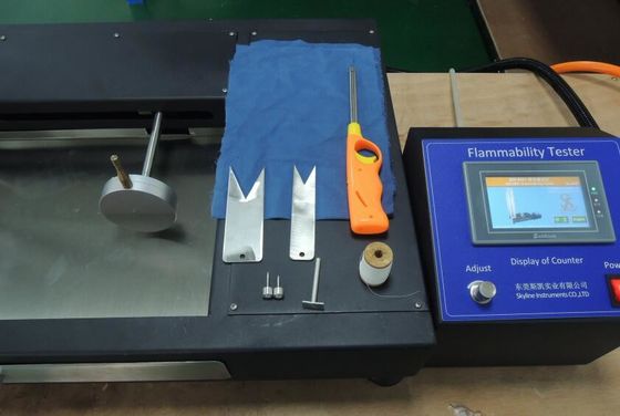 Il tester di combustione di verticale dei tessuti di tessuto ISO6941 è usato per le prove dei tessuti di tessuto che burining il comportamento. La misura della fiamma ha sparso le proprietà degli esemplari verticalmente orientati.