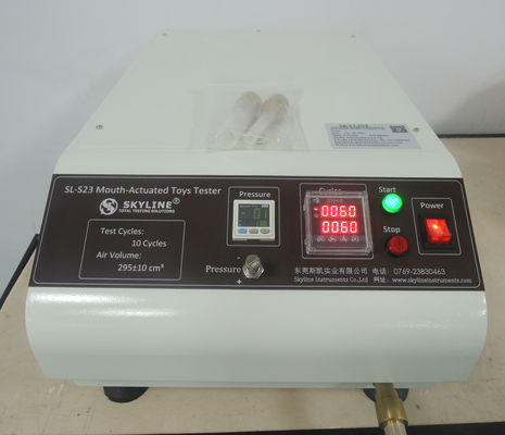 Lo strumento soddisfa il volume di aria almeno di 295 centimetri cubici +/- 10 centimetri cubici in 5 secondi e può alternatamente soffiare e succhiare i giocattoli 10 volte.