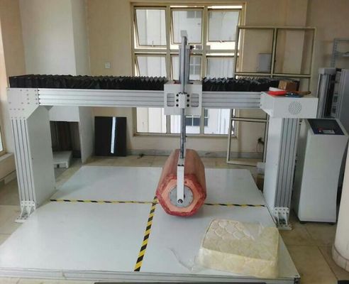 Utilizzi un rotolo orizzontale in barilotti o nella sfortuna di legno (ad entrambe l'estremità del diametro del cilindro 250 millimetri, 300 millimetri, la parte media della prova sul materasso, rotolo di nuovo a valutare durevolezza del materasso di azione umana.