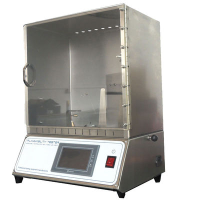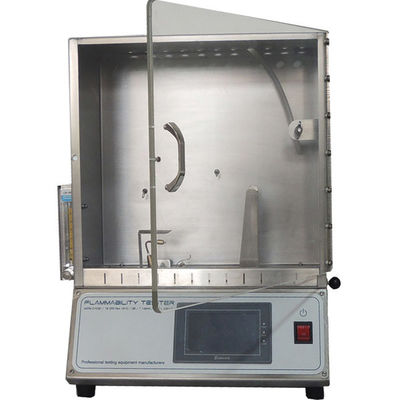 Per determinare le caratteristiche di combustione dei tessuti in condizioni controllate: armadietto di prova in acciaio inossidabile con pannello di osservazione in vetro dotato di tempistica automatica della diffusione della fiamma a 0.Aumenti di 1 secondo dall'accensione- Dispositivo per la spazzolatura, compresa la spazzola di nylon di ricambio.